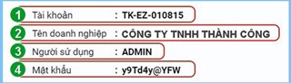 Hiện màn hình đăng nhập, người dùng tiến hành điền các thông tin tương ứng gồm 4 thông tín: Tài khoản – Tên doanh nghiệp – Người sử dụng – Mật khẩu.